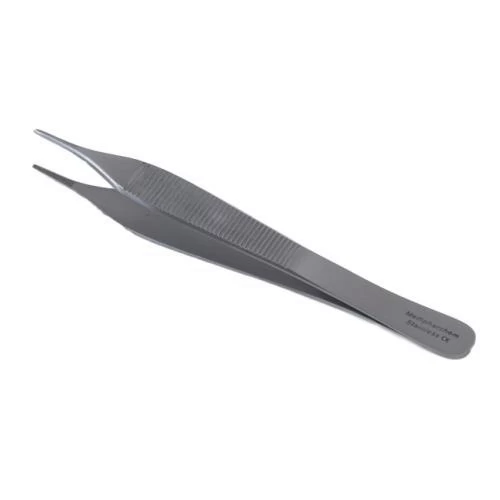 Een anatomisch pincet heeft geen tandjes, maar is voorzien van ribbels bij de bek voor het vastpakken van kwetsbare structuren en voor algemeen gebruik. De smalle uiteinden maken dit Adson pincet geschikt voor precisiewerk.