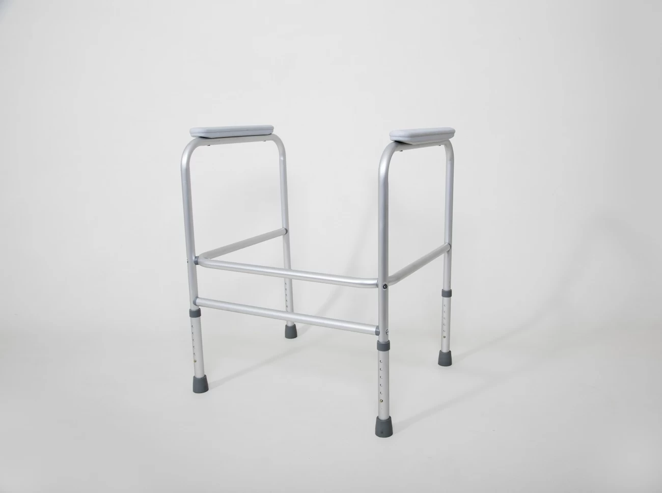 In hoogte verstelbaar aluminium frame met comfortabele armsteunen. Voorzien van anti-slip